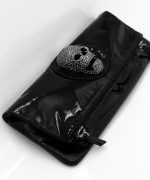 Designer patent leather clutch with a 3 dimensional steel/marcasite skull on the front